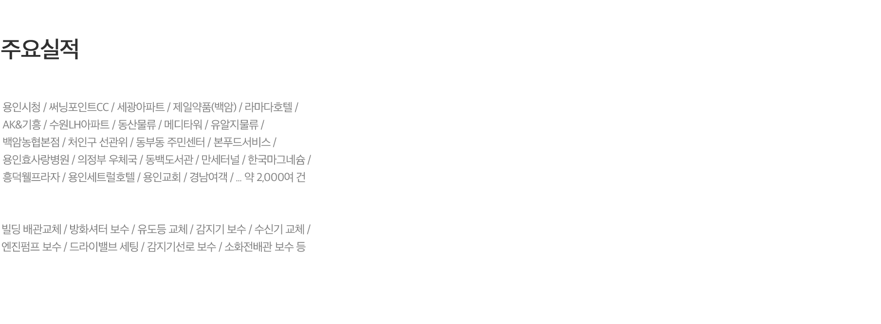 작동기능점검, 종합정밀점검, 안전관리대행, 소방시설설치, 소방시설보수, 수신기증설, 수신기교체, 감지기증설, 감지기교체, 스프링클러증설,